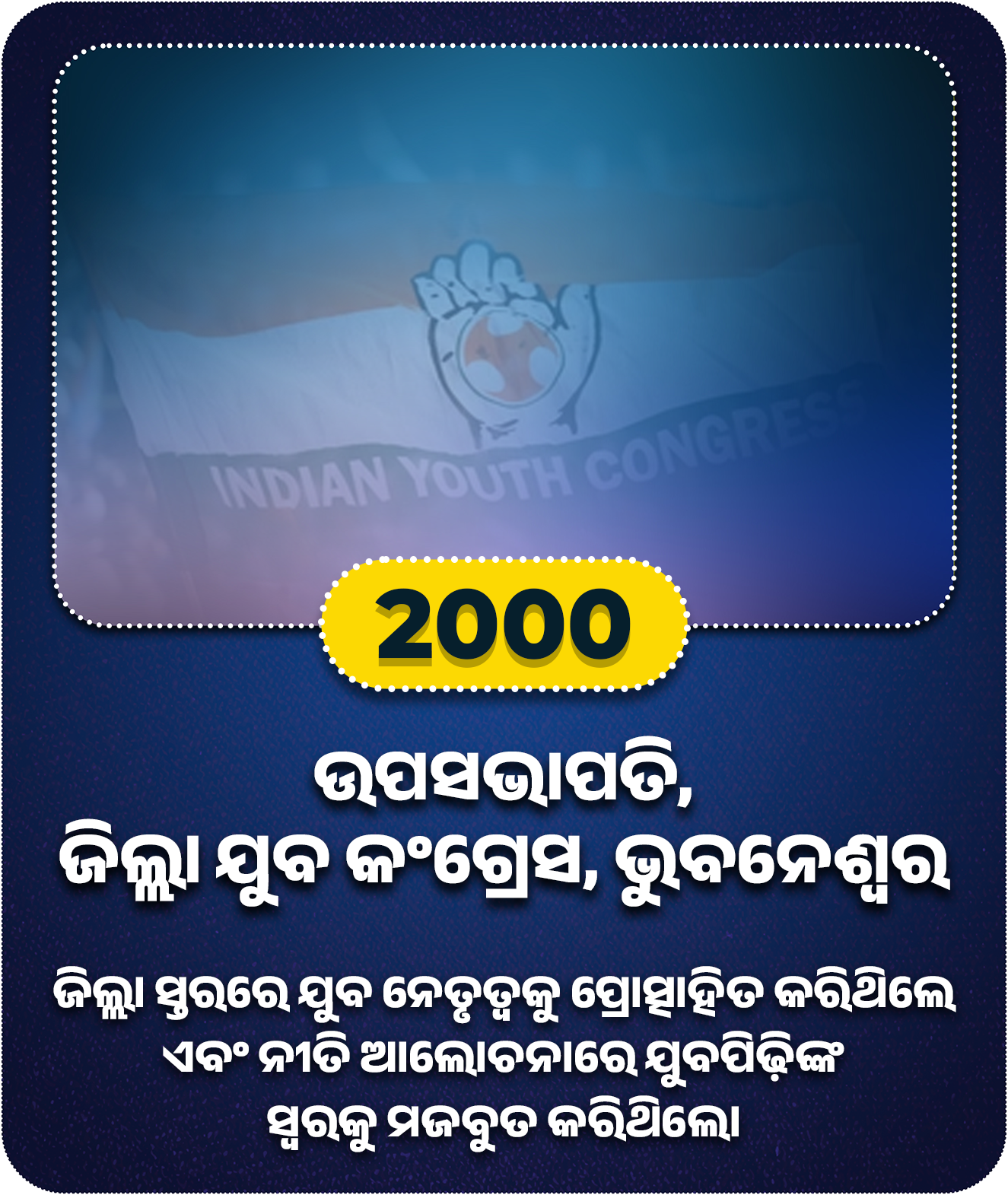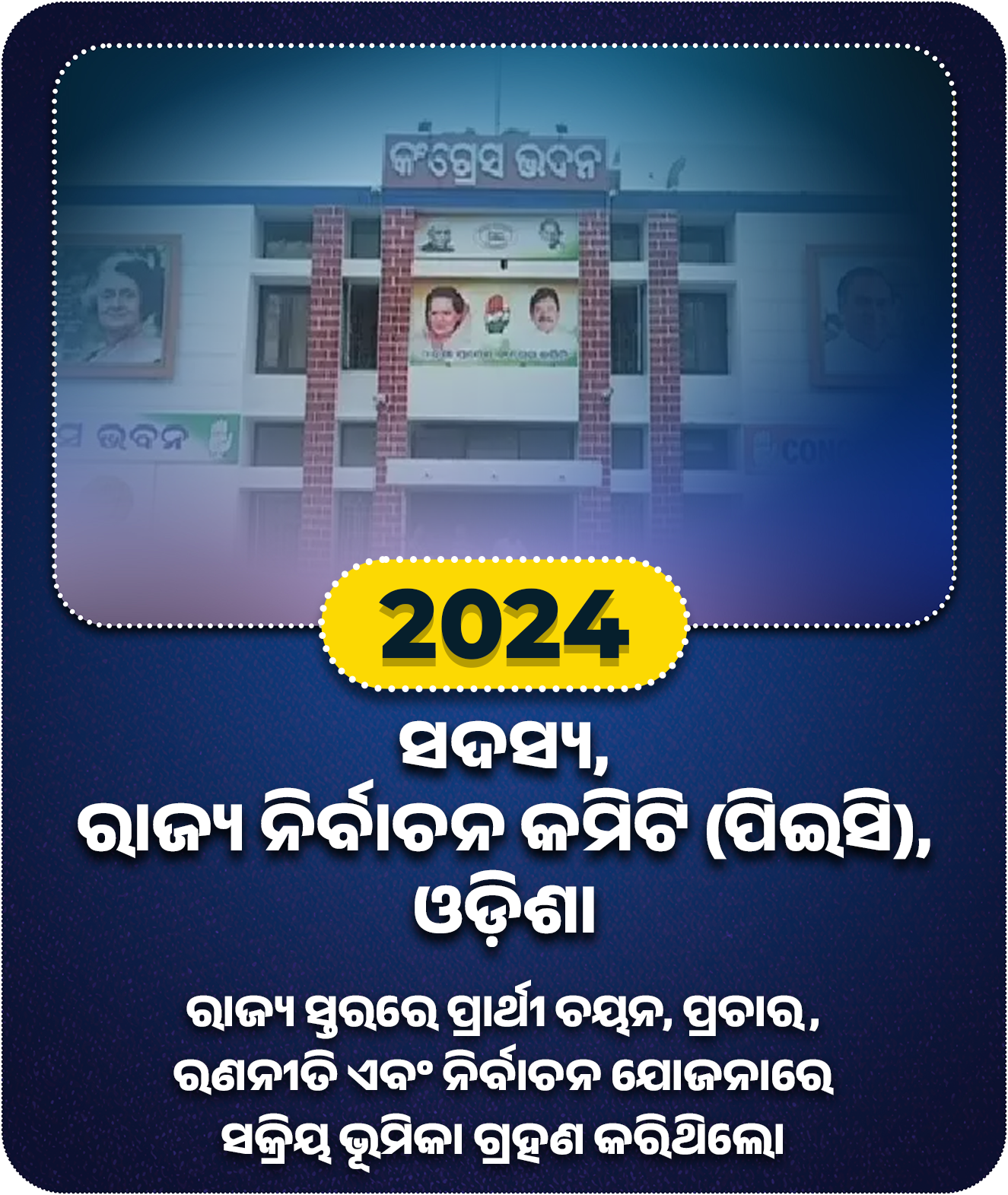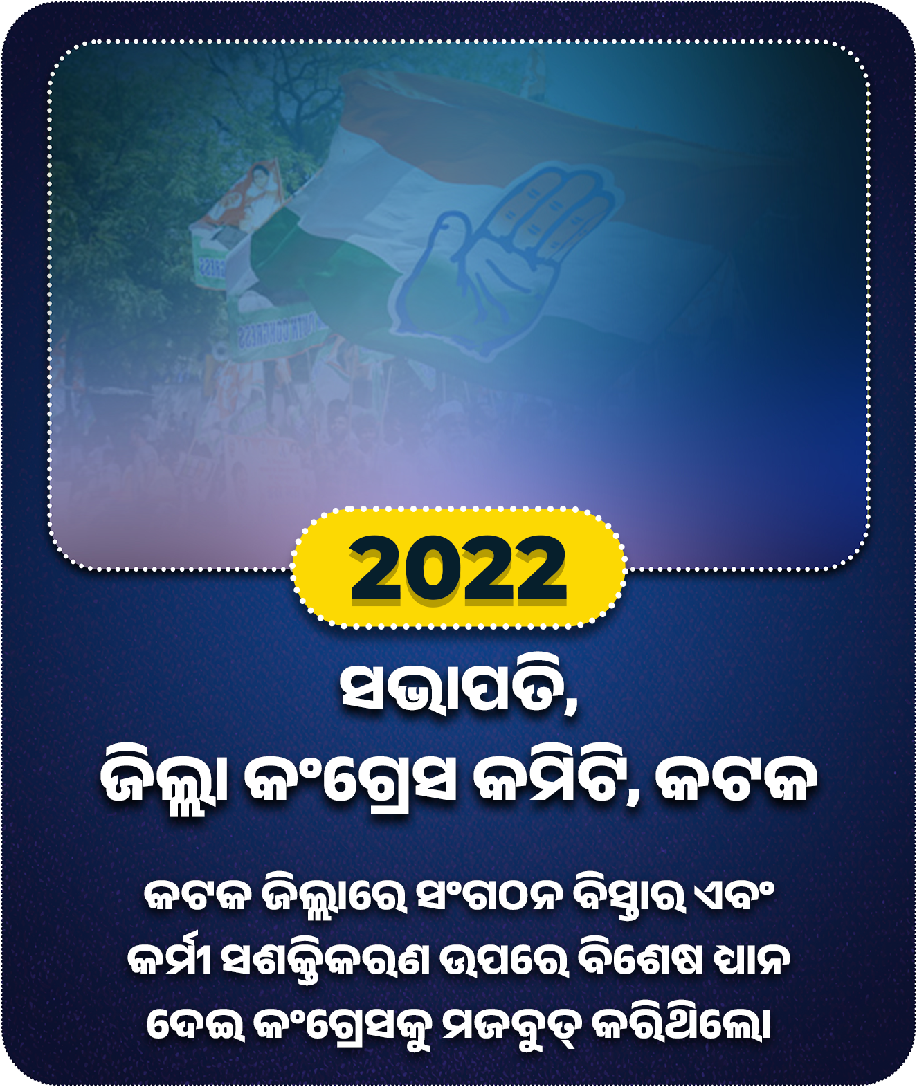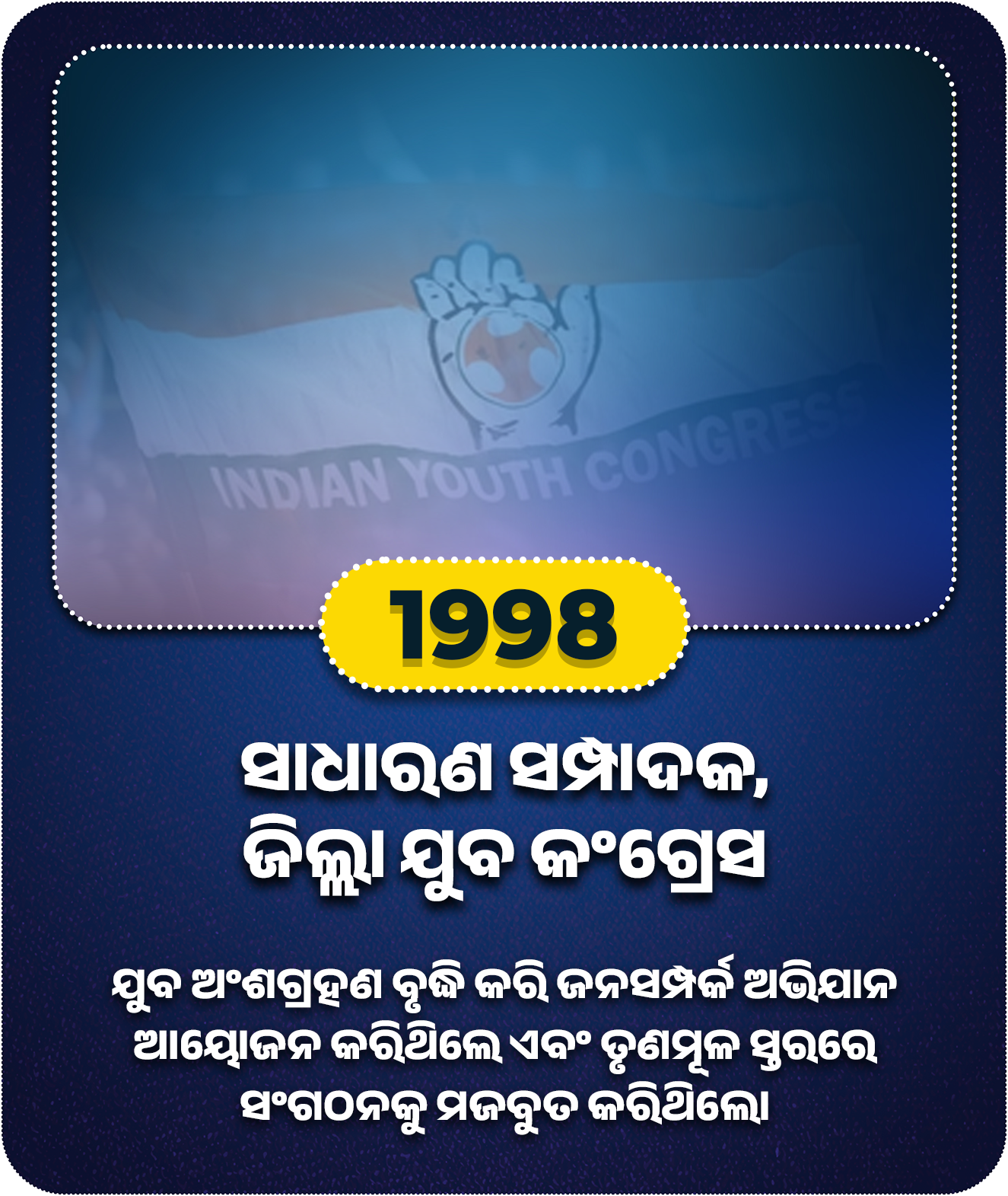 ଦୀର୍ଘ ଦୁଇ ଦଶନ୍ଧିରୁ ଉର୍ଦ୍ଧ୍ୱ ସମୟ ଧରି ସେ ଜନତାଙ୍କ ସେବା କରି, ସାରା ଓଡ଼ିଶାରେ କଂଗ୍ରେସ ସଂଗଠନ ସୃଦୃଢ଼ କରିବା ସହ ଶ୍ରମିକ, ଦଳିତ, ନିଷ୍ପେଷିତଙ୍କ ଅଧିକାର ପାଇଁ ଲଢ଼ି ଆସିଛନ୍ତି । ସେ ଜଣେ ବିଚକ୍ଷଣ ବ୍ୟକ୍ତିତ୍ଵ, ଜନନେତା, ଯୁବ ଉଦ୍ୟୋଗୀ, ସଂଗ୍ରାମୀ ଏବଂ ଅନ୍ୟାୟ ବିରୁଦ୍ଧରେ ଜନତାଙ୍କ ସିପାହୀ । ସମାଜ ବିରୋଧୀ ତତ୍ତ୍ଵ ବିରୁଦ୍ଧରେ ଲଢ଼ି, ଯୁବ ସମାଜକୁ ସଶକ୍ତ କରି ଏକ ସୁଦୃଢ଼ ଓଡ଼ିଶା ଗଠନ କରିବାକୁ ସେ ବଦ୍ଧ ପରିକର ।